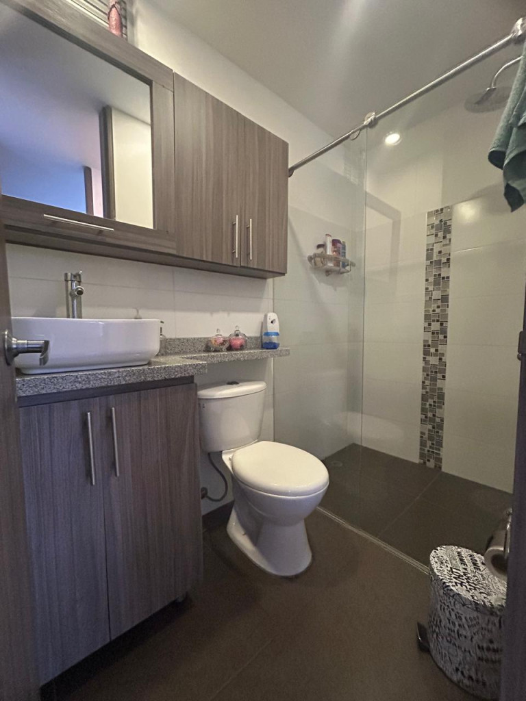 Apartamento en venta en el barrio Milán Manizales, Ideal para quienes buscan confort y exclusividad en la zona rosa de la ciudad, con completas zonas sociales. Este inmueble en primer piso combina espacios generosos con excelentes acabados interiores. Descripción de la propiedad: Con 112 m2 de área privada, este apartamento destaca por su cocina integral con barra americana y sala comedor con salida al balcón. Aunque legalmente cuenta con tres habitaciones, se unieron dos para lograr una alcoba principal de gran tamaño, ofreciendo dos habitaciones, con opción de la tercera y dos baños. Los acabados incluyen suelo de cerámica o mármol, doble ventana para aislamiento y zona de lavandería con calentador y gas domiciliario. La propiedad se entrega con dos parqueaderos privados para tu total comodidad. Descripción del entorno y acceso Ubicado en una urbanización cerrada estrato 6 con vigilancia y portería, el conjunto ofrece piscina, jacuzzi, sauna, turco, cancha de baloncesto y zona de bbq. Podrás disfrutar de amplias zonas verdes y parqueadero de visitantes. El edificio cuenta con ascensor y acceso pavimentado, situándose en una zona residencial tranquila cerca de parques. Es el lugar perfecto para vivir rodeado de naturaleza y servicios exclusivos. Contáctanos Escríbenos a nuestro WhatsApp para agendar tu visita a este exclusivo apartamento en Milán. Estamos atentos para brindarte toda la asesoría que necesitas en tu proceso de compra.