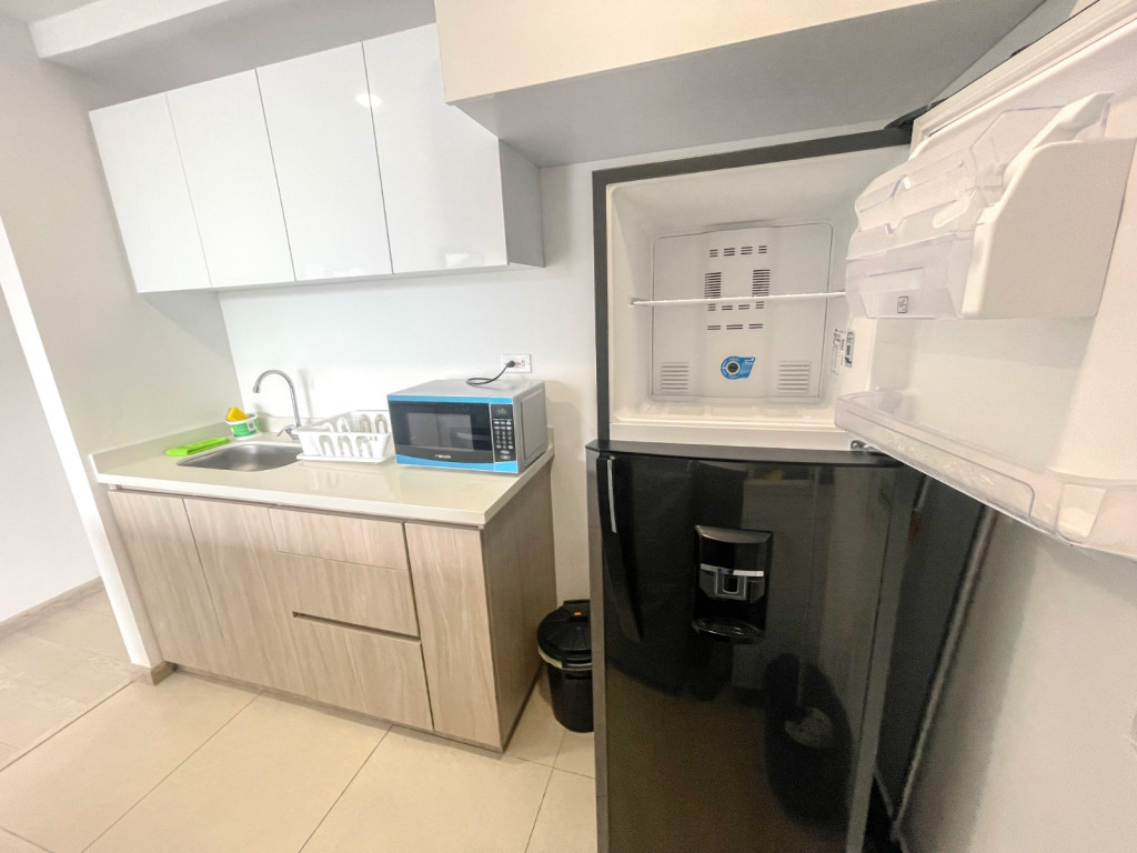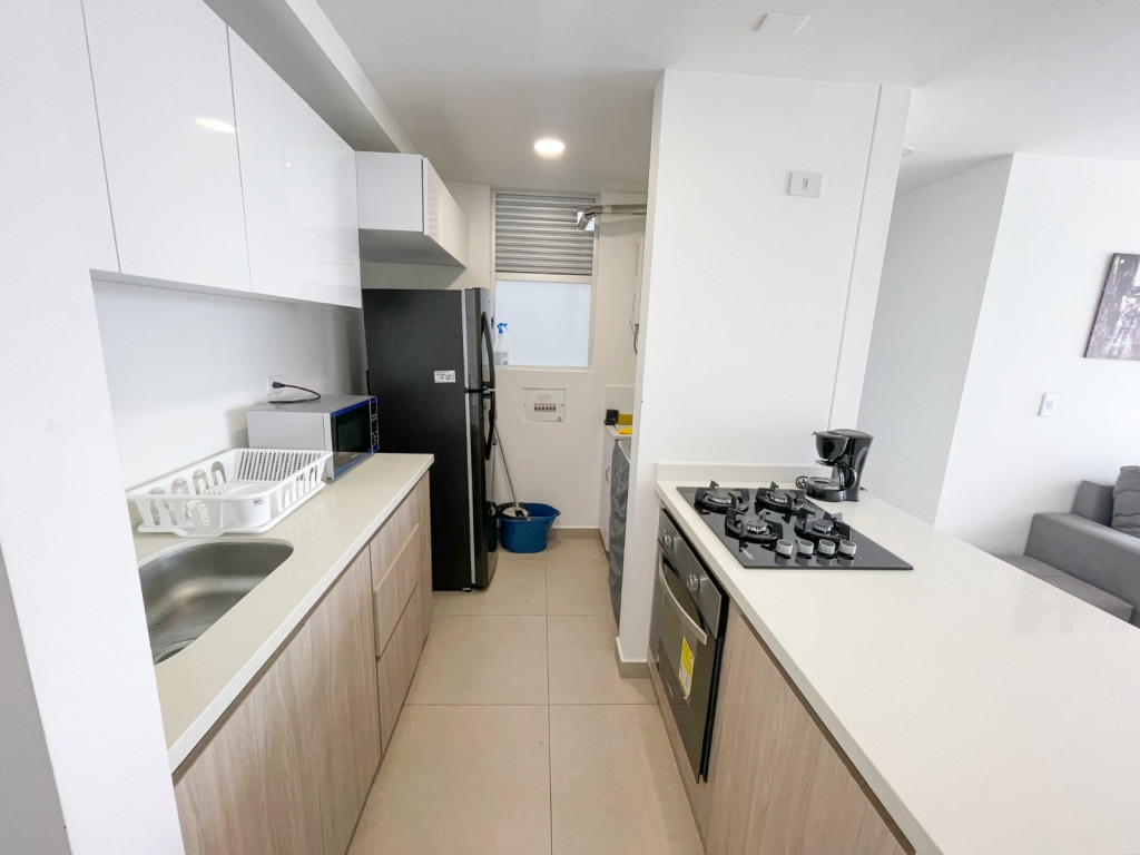 Apartamento amoblado en renta, en excelente sector de la ciudad, el apartamento queda en un piso 13, consta de 3 alcobas con closet, sala comedor, cocina integral, patio de ropas, balcón, piso en cerámica, el conjunto tiene porteria 24hrs y parqueadero privado.